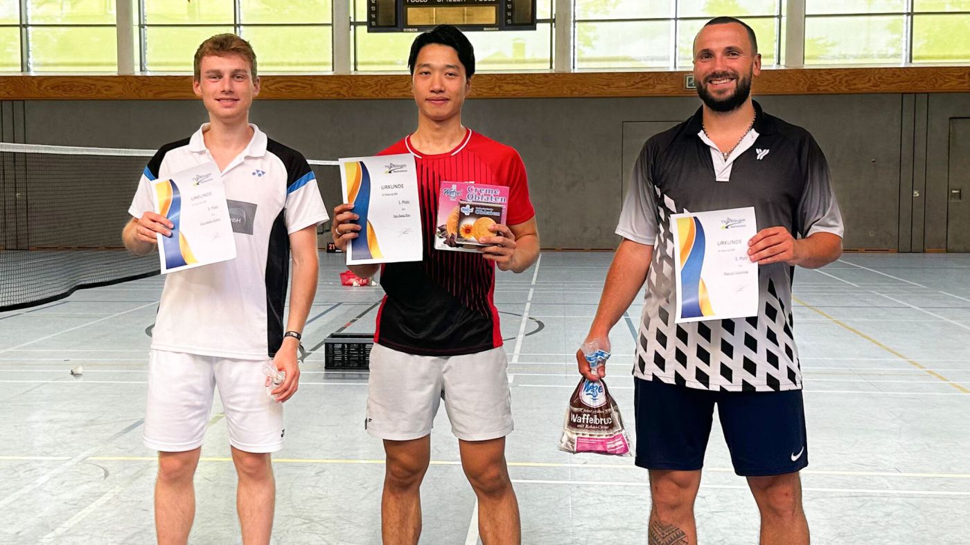 Im Dameneinzel marschierte Nadja ohne Satzverlust bis ins Finale, wo sie auf die kampf- und laufstarke Franca Singer (TuS Metzingen) traf. Nach klar gewonnenem erstem Satz verlor Nadja etwas die Konzentration im zweiten Durchgang und musste diesen abgeben. Dann drehte sie wieder auf und holte sich mit 21:14/14:21 und 21:6 den Turniersieg. Im Mixed kam Nadja zusammen mit Jan Huttenloch (SSV Waghäusel) auf den zweiten Platz. In einem guten Match unterlagen Nadja und Jan im Finale Jakob Schilling/Julia Hornstein vom Augsburger Regionalligisten SG Diedorf/Haunstetten mit 21:17/14:21/16:21. Alex erspielte sich sowohl im Einzel wie auch im Doppel mit Fabian Bender (TSV Neuhausen-Nymphenburg) den dritten Platz. In beiden Disziplinen gab es in den Halbfinals knappe Dreisatz-Niederlagen. Tim spielte Mixed mit Anne Ladwig (TuS Metzingen), etwas unglücklich konnten sich die beiden nach knappen Spielen in der Gruppenphase nicht fürs Hauptfeld qualifizieren, sie wurden am Ende als Neunte gewertet. Zusammen mit Mika fehlte auch im Doppel nur ganz wenig, um nach den Gruppenspielen weiterzukommen. Mit druckvollem Spiel und guter Harmonie gewannen Tim/Mika gegen Jan Huttenloch/Julian Johannes Mertes (SSV Waghäusel/TSV Haunstetten) in drei Sätzen. Die anderen beiden Partien gingen verloren, gegen Daniel Hecher/Jakob Schilling (ESV Flügelrad Nürnberg/TSV Diedorf), die Vierten der Setzliste, recht knapp in drei Sätzen. Auch hier war es dann der neunte Platz in der Endabrechnung. In der Fotogalerie befindet sich ein Album mit einigen Aufnahmen vom Turnier, alle Infos zu den Matches gibt es hier.