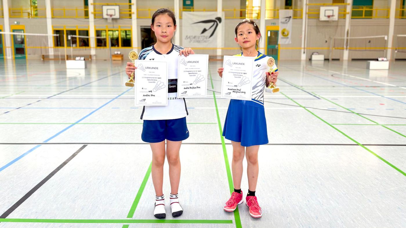 Anneliese ist eigentlich U11-Spielerin, doch ihre Altersklasse entfiel und sie musste deshalb in U13 antreten. Im Einzel wurde sie Sechste, im Doppel mit Menghan Liang (Aalener Sportallianz) Dritte und kam somit aufs Podium. In U15 siegte ihre Schwester Amélie sowohl im Einzel wie auch im Doppel mit Lisa Prinz (SV Primisweiler). Vinzent spielte nur Einzel, in U15 ging er mit Setzplatz sechs ins Rennen. Nur im Viertelfinale musste er sich knapp in drei Sätzen geschlagen geben, alle anderen Matches gewann er und wurde in der Endwertung damit Fünfter.