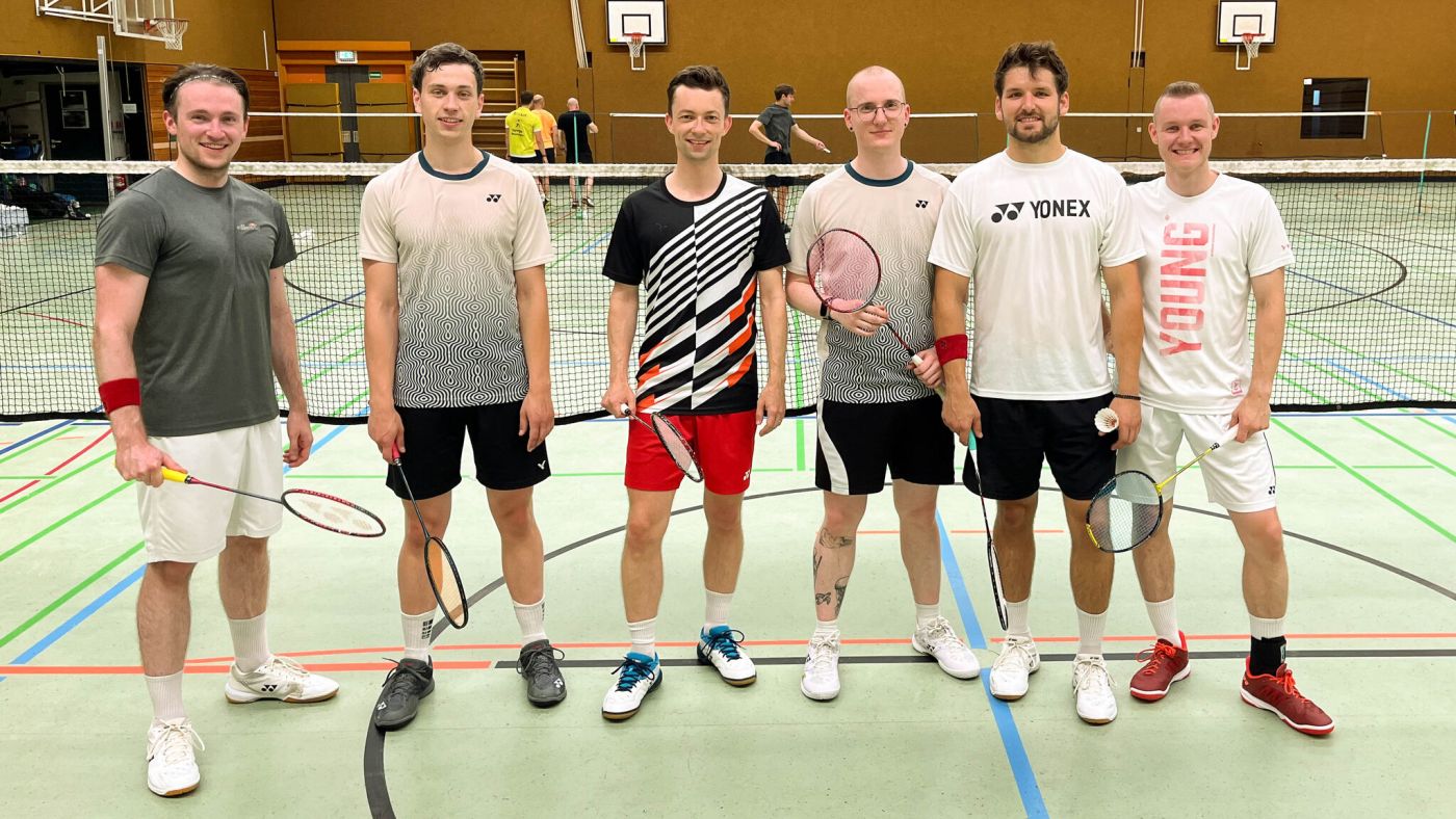 Einen besonderen “Sparringspartner“ hatte die Badmintonabteilung unlängst im Training zu Gast. Bundesligaspieler Andreas Pistorius (3. v.li.), von klein auf für den TSV Freystadt in der Oberpfalz am Start, gab sich die Ehre.