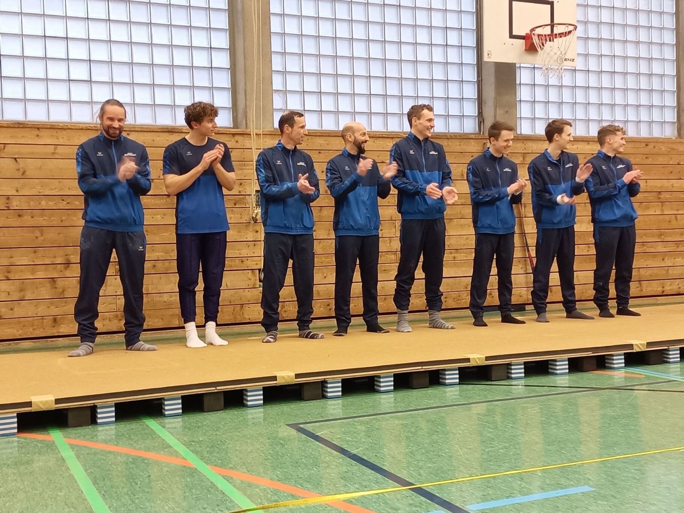 Knapp 100 Zuschauer bejubelten den Heimsieg im Bezirksligaderby gegen den TSV Urach mit 258,25:246,75 Punkten. Die Spvgg überzeugte mit fast fehlerlosen Darbietungen, während die Turner aus dem Ermstal bei ihrem ersten Ligawettkampf teilweise unglücklich agierten. Bei der mit Spannung erwarteten Begegnung übernahm Urach am Boden mit 49,55:49,50 die Führung. Die Steinlachriege erwischte am Pauschenpferd einen guten Tag und erturnte sich einen 3,7 Punkte Vorsprung. Durch einen weiteren Sieg an den Ringen führte die Steinlachriege bei Halbzeit mit 130,60:126,7 Punkten. Die Vorentscheidung fiel dann beim Sprung. Die stärker eingeschätzten Gäste patzten und verhalfen der Heimriege erstmals zu einem hauchdünnen Geräteerfolg. Mössingen hingegen konnte ihr vermeintlich starkes Gerät Barren souverän mit 44,70:41,90 Punkten gewinnen. Damit war die jederzeit faire und verletzungsfreie Begegnung praktisch entschieden. Entspannt siegte die Spvgg dann noch klar beim abschließenden Reckturnen. Mit diesem erhofften Heimsieg dank einer guten Mannschaftsleistung ist das Saisonziel „Vorderer Tabellenplatz“ bereits erreicht. Übrigens hat Tom Kremsler mit 10,5 Punkten am Boden seinen Ligaeinstand gegeben.