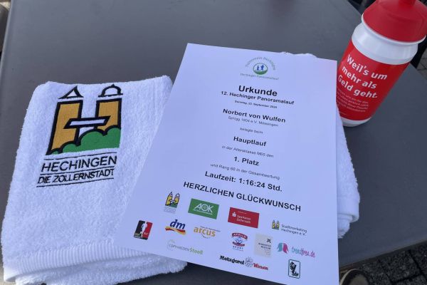 Am 22. September 2024 fand der 12. Hechinger Panoramalauf statt – ein Sonntagsereignis bei herrlichem Sommerwetter- Sommerfinale. Besonders stolz waren wir in diesem Jahr, denn unsere WalkerInnen Inge und Klaus-Dieter Früh nahmen zum ersten Mal an einem Wettkampf teil. Ihre Disziplin: der 6 km Panoramawalk. Unterstützt wurden sie von unserer Abteilungsleiterin Maria von Wulfen, die ebenfalls die Strecke von 6 km meisterte. Parallel dazu trat der Vorsitzende der Sportvereinigung, Norbert von Wulfen, im 10 km-Lauf an.