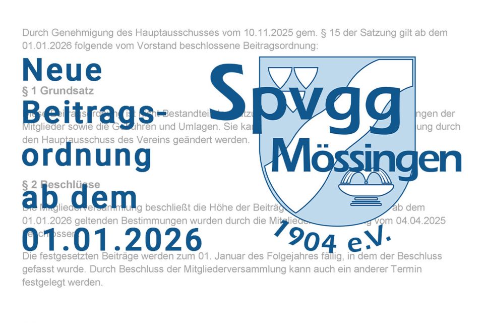 Neue Beitragsordnung ab 01.01.2026