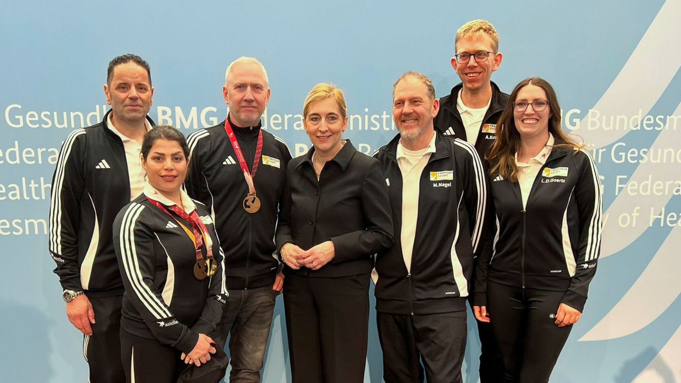 Zum ersten Mal in ihrer Geschichte wurden die Word Transplant Games WTG im vergangenen August in Deutschland ausgetragen. Der erfolgreiche Verlauf der 25. WM der Transplantierten in der sächsischen Landeshauptstadt Dresden fand jetzt noch eine besondere Würdigung. Bundesgesundheitsministerin Nina Warken lud alle WM-Teilnehmer des Teams Deutschland zu einem Empfang nach Berlin ein, der an diesem Dienstag stattfand. Mit dabei war auch Jörg-Andreas Reihle von der Spvgg, der in Dresden im Badminton-Einzel den fünften Platz belegt hatte.
