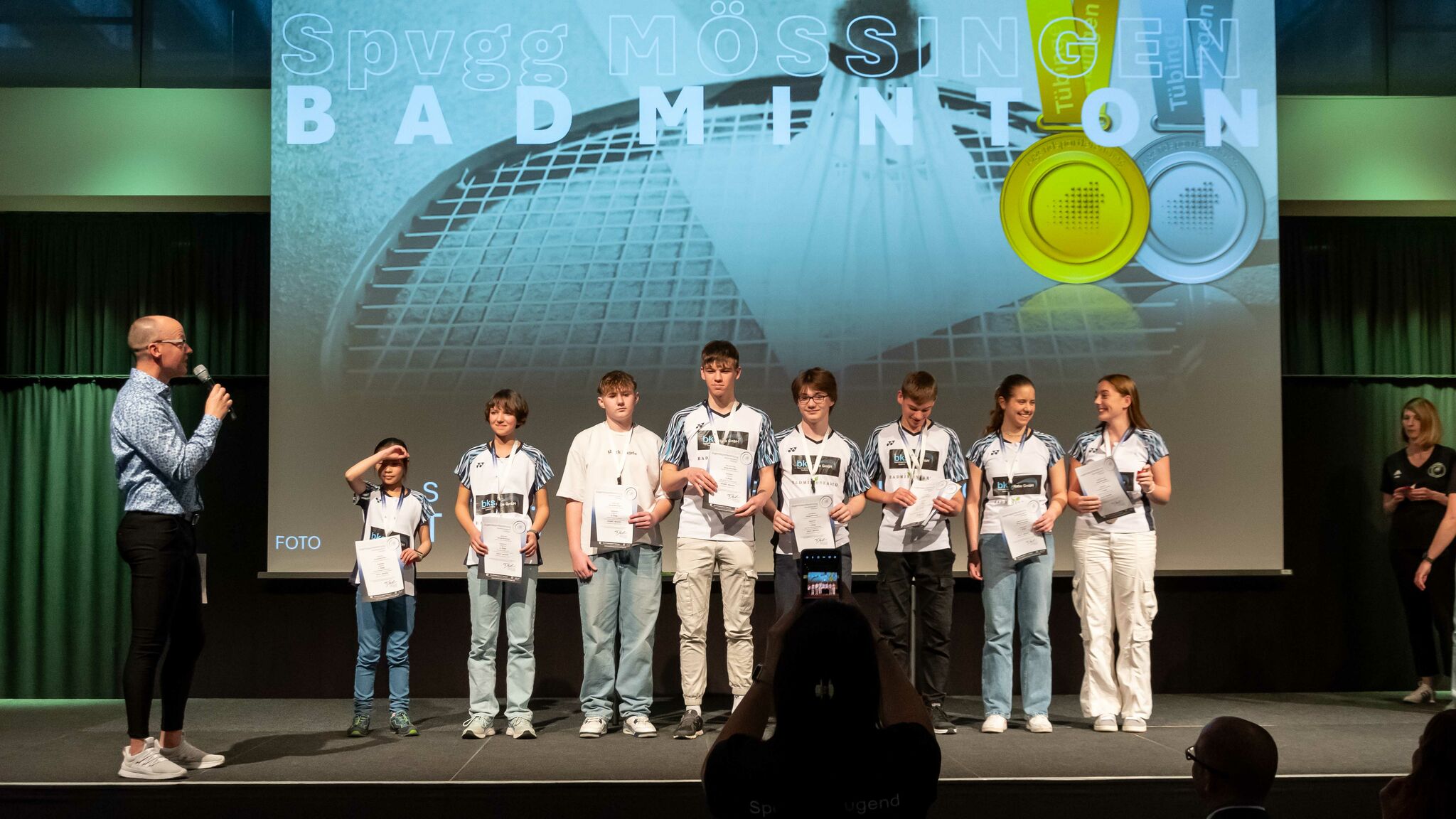 Bei der Jugendsportlerehrung der Sportkreisjugend Tübingen wurden am Donnerstagabend zwölf Jugendspieler der Badmintonabteilung für ihre sportlichen Leistungen im Jahr 2023 geehrt. Wegen Krankheit, Schüleraustausch und Turnieren konnten nicht alle bei der Ehrung dabei sein. Wie in den Vorjahren fand die Veranstaltung im Sparkassen Carré der KSK Tübingen statt.