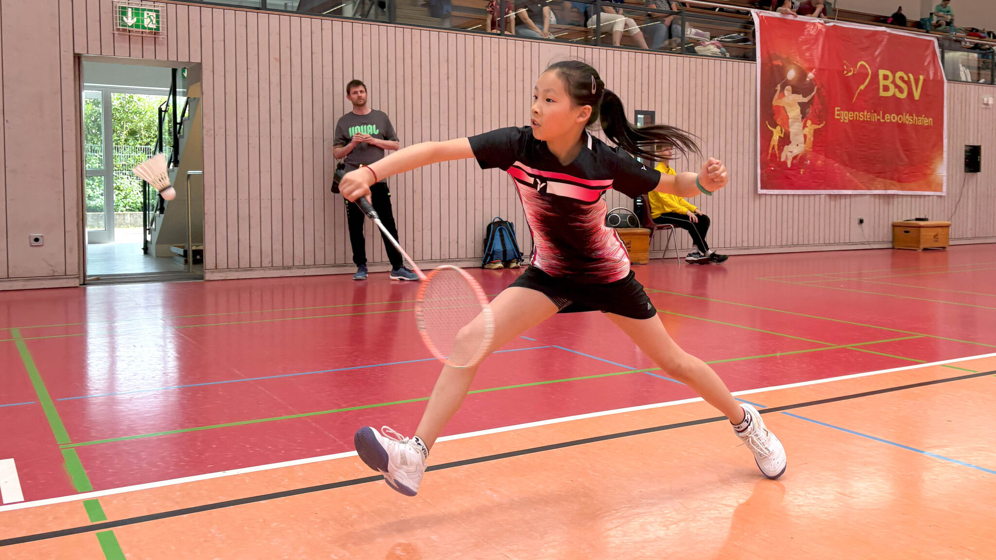 Der BSV Eggenstein-Leopoldshafen war Ausrichter der 4. Deutschen Rangliste der Altersklassen U11 und U13 am Wochenende. Von den Mössinger “Schmetterlingen“ waren Amélie Zhu (auf dem Foto in Aktion) und ihre Schwester Anneliese Zhu am Start.