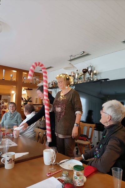 Unser jüngstes Mitgeh-Mitglied Rose Söll war auf jeden Fall ganz angetan von dem bunten Miteinander. Brigitte Grimminger, ältestes Mitgeh-Mitglied, las uns eine Weihnachtsgeschichte vor. Zum Abschluss erhielten die Gäste des Vormittags eine Karte zur Selbsteinschätzung. Wie brav waren sie in 2024? Ausreichend für ein Geschenkle? Natürlich!