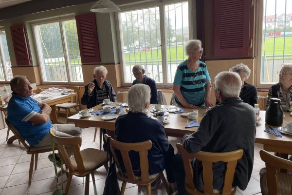 Erika Schneemann lädt jeden Monat einmal zum Treff in der Sportgaststätte ein und wird vom Sportvorstand höchstpersönlich bedient – Ehre wem Ehre gebührt. Seit Jahrzehnten ist unsere Erika dem Sportverein treu verbunden und lädt einen Nachmittag im Monat ein zu Kaffee und Kuchen und zur Vesperzeit gibt es Pizza für alle.